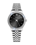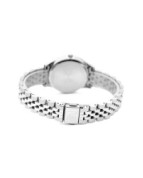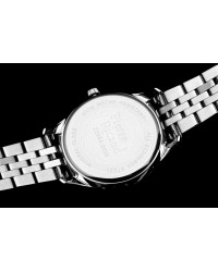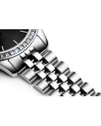 The Pierre Ricaud women’s quartz watch is an elegant model in glamour style, designed for women who appreciate sparkle and refined fashion. The case and bracelet are made of high-quality stainless steel, ensuring durability and a luxurious look. The bezel adorned with shimmering crystals adds a touch of brilliance and catches the eye. The watch is powered by a reliable Citizen Miyota 2035 quartz movement for accurate timekeeping. The dial features sleek linear hour markers, with a Roman numeral at 12 o’clock, giving it a classic and sophisticated touch. It is protected by mineral glass, which resists minor scratches, while the 3 ATM water resistance protects the watch from accidental splashes. This is a perfect accessory for women who want to highlight their femininity and sense of style.
