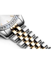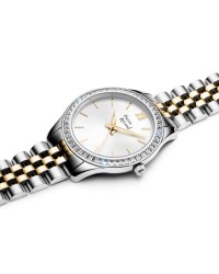 The Pierre Ricaud women’s quartz watch is an elegant model in glamour style, designed for women who appreciate sparkle and refined fashion. The case and bracelet are made of high-quality stainless steel, ensuring durability and a luxurious look. The bezel adorned with shimmering crystals adds a touch of brilliance and catches the eye. The watch is powered by a reliable Citizen Miyota 2035 quartz movement for accurate timekeeping. The dial features sleek linear hour markers, with a Roman numeral at 12 o’clock, giving it a classic and sophisticated touch. It is protected by mineral glass, which resists minor scratches, while the 3 ATM water resistance protects the watch from accidental splashes. This is a perfect accessory for women who want to highlight their femininity and sense of style.