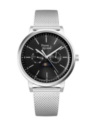This men's watch by Pierre Ricaud is designed for those who value contemporary design combined with practical features. At its heart beats a Japanese Seiko Epson VX3HE quartz movement, renowned for its reliability and precise multifunction indications. The model offers extended functionality – the dial features sub-dials displaying the moon phase, day of the week, and month, arranged in a harmonious and easy-to-read layout. Linear hour markers are complemented by a minute track above them, enhancing precision and emphasizing the watch’s modern character. The case and stylish mesh bracelet are made of high-quality stainless steel, ensuring durability and an elegant appearance. The dial is protected by lightweight plastic glass, suitable for everyday use. The watch has a water resistance rating of 3 ATM, which protects it against minor splashes – ideal for an urban lifestyle. With its minimalist yet dynamic aesthetics, this Pierre Ricaud model is a perfect accessory for men who appreciate modernity and multifunctionality in one sophisticated timepiece.