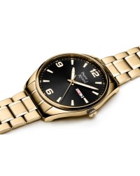Poznaj męski zegarek kwarcowy Pierre Ricaud, stworzony z myślą o mężczyznach, którzy cenią ponadczasową elegancję i czytelność w codziennym użytkowaniu. Model ten posiada kopertę i bransoletę wykonaną z wysokiej jakości stali szlachetnej, która zapewnia trwałość oraz klasyczny, męski charakter. Tarczę chroni odporne na zarysowania szkło szafirowe, gwarantując przejrzystość i estetyczny wygląd przez długi czas. Na godzinie 3 znajduje się praktyczne wskazanie dnia tygodnia oraz miesiąca, zwiększające funkcjonalność zegarka w codziennym użytkowaniu. Cyferblat wyposażono w smukłe, liniowe indeksy, a na godzinach 6, 9 i 12 umieszczono duże cyfry arabskie, które zapewniają doskonałą czytelność w każdej sytuacji. Nad indeksami znajduje się precyzyjna skala minutowa, pozwalająca na szybkie i wygodne odczytanie godziny. Zegarek posiada wodoszczelność 5 ATM, co chroni go przed zachlapaniami oraz umożliwia bezpieczne użytkowanie podczas codziennych aktywności. Całość wyróżnia się ponadczasowym, minimalistycznym designem, który doskonale komponuje się zarówno z eleganckim garniturem, jak i codziennymi stylizacjami. To idealny wybór dla mężczyzn poszukujących niezawodnego, czytelnego zegarka, który podkreśli ich styl.