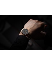 Męski zegarek kwarcowy Pierre Ricaud to propozycja dla mężczyzn, którzy cenią elegancję i subtelne wykończenia w codziennym stylu. Model posiada kopertę i bransoletę wykonaną z wysokiej jakości stali szlachetnej, zbudowaną z małych ogniw, które doskonale dopasowują się do nadgarstka, zapewniając komfort noszenia i klasyczny wygląd. Tarczę chroni odporne na zarysowania szkło szafirowe, gwarantujące przejrzystość oraz nienaganny wygląd przez lata. Na godzinie 3 znajduje się praktyczny datownik, umożliwiający szybki odczyt daty podczas codziennego użytkowania. Zegarek wyposażono w smukłe, liniowe indeksy godzinowe oraz duży, arabski indeks na godzinie 12, co podkreśla elegancki charakter i zapewnia doskonałą czytelność. Tarcza posiada subtelną strukturę, która dodaje głębi oraz wyrafinowanego wyglądu, przyciągając wzrok i podkreślając wyjątkowość tego modelu. Dzięki wodoszczelności 5 ATM zegarek jest odporny na zachlapania, co pozwala na bezpieczne użytkowanie podczas codziennych aktywności. Pierre Ricaud w tym modelu łączy elegancję, funkcjonalność i ponadczasowy styl, tworząc zegarek, który idealnie uzupełni zarówno biznesowe stylizacje, jak i codzienne zestawy, podkreślając męski charakter i styl każdego dnia.