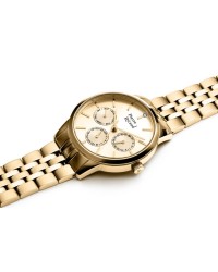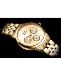 Stylowy damski zegarek marki Pierre Ricaud łączy elegancję z nowoczesną funkcjonalnością. Wykonany ze stali szlachetnej model zachwyca kopertą i bransoletą z mniejszych i większych ogniw, które tworzą harmonijną, błyszczącą całość. Zegarek napędzany jest precyzyjnym mechanizmem kwarcowym i wyposażony w odporne na zarysowania szkło mineralne. Wodoszczelność 3 ATM chroni go przed drobnymi zachlapaniami, dzięki czemu doskonale sprawdza się w codziennym użytkowaniu. Tarcza ozdobiona jest liniowymi indeksami oraz cyrkonią na godzinie 12, która dodaje całości subtelnego blasku. Trzy subtarcze multifunkcyjne prezentują dzień tygodnia, dzień miesiąca oraz czas w formacie 24-godzinnym. To idealny wybór dla kobiet ceniących połączenie elegancji, jakości i praktycznych rozwiązań.