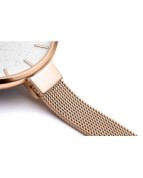 Damski zegarek kwarcowy Pierre Ricaud to wyjątkowo elegancki i delikatny model, idealny dla kobiet ceniących subtelne, a zarazem stylowe dodatki. Koperta oraz wąska bransoleta typu mesh wykonane są z wysokiej jakości stali szlachetnej, co gwarantuje trwałość oraz lekkość konstrukcji. Wewnątrz znajduje się precyzyjny mechanizm kwarcowy Citizen Miyota GL30, znany z niezawodności i dokładności. Tarcza ozdobiona jest smukłymi, liniowymi indeksami, które podkreślają minimalistyczny charakter zegarka. Na godzinie 6 znajduje się subtelnie wkomponowany datownik, który zwiększa funkcjonalność bez zakłócania estetyki. Całość chroniona jest szkłem mineralnym, a wodoszczelność na poziomie 3 ATM zapewnia ochronę przed przypadkowymi zachlapaniami. To doskonały wybór dla kobiet szukających stylowego, nowoczesnego, a jednocześnie klasycznego zegarka.