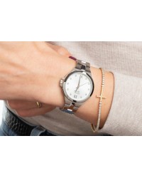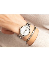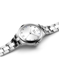 Damski zegarek kwarcowy Pierre Ricaud to elegancka i kobieca propozycja dla miłośniczek klasycznych dodatków z nutą blasku. Wyposażony w niezawodny mechanizm Citizen Miyota 2035, zapewnia precyzyjne odmierzanie czasu i komfort codziennego użytkowania. Koperta oraz bransoleta zostały wykonane z wysokiej jakości stali szlachetnej, co gwarantuje trwałość, odporność na korozję i stylowy wygląd. Tarcza zegarka zachwyca subtelnym połączeniem połyskujących cyrkonii, pełniących rolę punktowych indeksów godzinowych, oraz eleganckich arabskich cyfr umieszczonych na godzinie 6 i 12, które dodają całości wyrafinowanego charakteru i poprawiają czytelność. Całość chroniona jest przez szkło mineralne, a wodoodporność na poziomie 3 ATM pozwala na kontakt z wodą w codziennych sytuacjach, takich jak mycie rąk czy lekki deszcz. Ten model Pierre Ricaud to harmonijne połączenie delikatnego blasku, kobiecego stylu i praktycznej elegancji — idealny wybór zarówno do codziennego noszenia, jak i na specjalne okazje.
