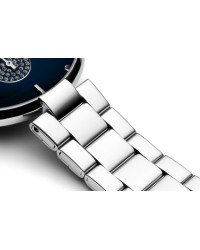 Damski zegarek marki Pierre Ricaud to elegancki i biżuteryjny model, który łączy wyrafinowany styl z niezawodnością. Koperta i bransoleta wykonane są z wysokiej jakości stali szlachetnej, a bransoleta składa się z dużych i małych ogniw, tworząc efektowną kompozycję. Wewnątrz pracuje precyzyjny mechanizm kwarcowy Citizen Miyota 1L40, który zapewnia dokładność chodu. Zegarek posiada mineralne szkło oraz wodoszczelność na poziomie 3 ATM, chroniącą przed przypadkowymi zachlapaniami. Na tarczy znajduje się subtarcza sekundnika ozdobiona kamyczkami, a eleganckie indeksy liniowe na godzinach 3, 6, 9 i 12 uzupełniają cyrkonie na pozostałych pozycjach, dodając całości biżuteryjnego blasku. To doskonały wybór dla kobiet ceniących styl i funkcjonalność.
