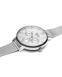 Posiada kopertę i bransoletę typu mesh z wysokiej jakości stali szlachetnej w kolorze srebrnym oraz piękną, efektowną tarczę w kolorze srebrnym.