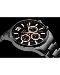 Męski zegarek kwarcowy marki Pierre Ricaud to połączenie sportowej funkcjonalności i eleganckiego stylu w solidnej formie. Koperta oraz bransoleta wykonane są z dużych ogniw ze stali szlachetnej, co nadaje zegarkowi wyrazisty, męski charakter oraz zapewnia trwałość na długie lata. W jego wnętrzu pracuje precyzyjny mechanizm Seiko Epson VX9JE, gwarantujący niezawodne działanie i dokładność wszystkich funkcji. Tarcza zabezpieczona jest szkłem mineralnym, odpornym na zarysowania i uszkodzenia, a wodoodporność na poziomie 5 ATM chroni zegarek przed codziennymi zachlapaniami. Model wyróżnia się czytelną tarczą z nakładanymi indeksami liniowymi oraz cyfrą arabską na godzinie 12, nad którymi biegnie wyraźna skala minutowa. Subtarcze multifunkcyjne prezentują dzień tygodnia, dzień miesiąca oraz czas w formacie 24-godzinnym, co podkreśla praktyczny i nowoczesny charakter zegarka. Całość uzupełnia sportowy, a zarazem stylowy design, który doskonale sprawdzi się zarówno na co dzień, jak i w bardziej casualowych stylizacjach. To idealny wybór dla mężczyzn ceniących precyzję, wygodę i elegancję w nowoczesnym wydaniu.