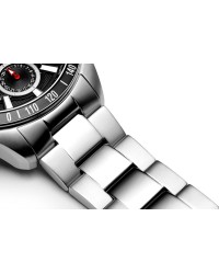 Męski zegarek kwarcowy o multifunkcyjnym charakterze to połączenie sportowego stylu, technicznej precyzji i solidnego wykonania. Koperta oraz bransoleta z dużych ogniw wykonane są z wysokiej jakości stali szlachetnej, co nadaje zegarkowi masywny, męski wygląd i zapewnia trwałość. W jego wnętrzu pracuje niezawodny mechanizm Seiko Epson VX9J, gwarantujący dokładne działanie wszystkich funkcji. Ochronę tarczy zapewnia wyjątkowo odporne szkło szafirowe, chroniące przed zarysowaniami i uszkodzeniami. Model posiada wodoszczelność na poziomie 10 ATM, dzięki czemu sprawdzi się również podczas aktywności sportowych. Tarcza zegarka jest czytelna i wyrazista – zdobią ją grube, nakładane indeksy oraz skala minutowa biegnąca wokół ich górnej krawędzi. Bezel ze skalą podkreśla techniczny charakter modelu, dodając mu dynamicznego wyglądu. Subtarcze multifunkcyjne prezentują dzień tygodnia, dzień miesiąca oraz czas w formacie 24-godzinnym, zapewniając pełną kontrolę nad upływem czasu. To zegarek stworzony dla mężczyzn, którzy cenią funkcjonalność, nowoczesny design i sportową elegancję w solidnym, precyzyjnie wykonanym wydaniu.