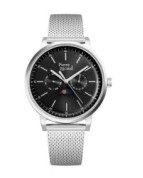 Ten męski zegarek marki Pierre Ricaud to propozycja dla osób ceniących nowoczesny design połączony z praktycznymi rozwiązaniami. Serce zegarka stanowi japoński mechanizm kwarcowy Seiko Epson VX3HE, znany z niezawodnej pracy oraz precyzyjnych wskazań dodatkowych funkcji. Model oferuje rozbudowaną multifunkcję – na tarczy znajdują się subtarcze z fazami Księżyca, dniem tygodnia oraz miesiącem, które tworzą harmonijny i czytelny układ. Liniowe indeksy godzinowe zostały uzupełnione o skalę minutową umieszczoną nad nimi, co zwiększa precyzję odczytu i podkreśla współczesny charakter zegarka. Koperta oraz stylowa bransoleta typu mesh zostały wykonane z wysokiej jakości stali szlachetnej, co zapewnia trwałość oraz elegancki wygląd. Tarczę chroni lekkie i przejrzyste szkło plastikowe, odpowiednie dla codziennego użytkowania. Zegarek posiada wodoodporność na poziomie 3 ATM, co oznacza odporność na drobne zachlapania – idealny do miejskiego stylu życia. Dzięki minimalistycznej, a zarazem dynamicznej stylistyce, ten model Pierre Ricaud doskonale sprawdzi się jako elegancki dodatek dla mężczyzny ceniącego nowoczesność i funkcję w jednym.